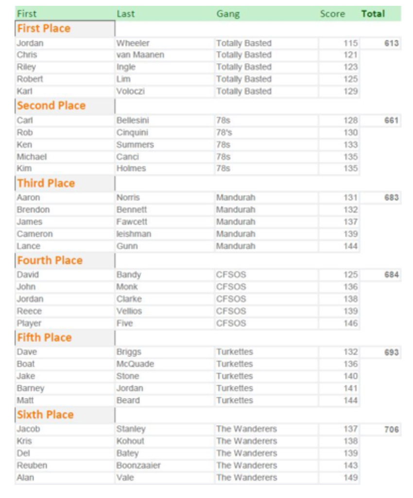 After 2 keenly contested rounds played under grey and at times gloomy weather, albeit far less windy than the 2019 event, it was still a rafter of Turkeys that came out on top of the roost. The old timers in the 78s Disc Golf Cartel came second with the gang from Mandurah just squeezing in to third place.